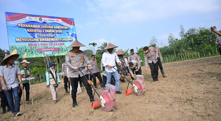 “Program tanam jagung ini merupakan upaya bersama antara Polri, pemerintah daerah dan masyarakat dalam memperkuat ketahanan pangan nasional serta mendorong terciptanya swasembada jagung,” ujar Kapolres Pidie.