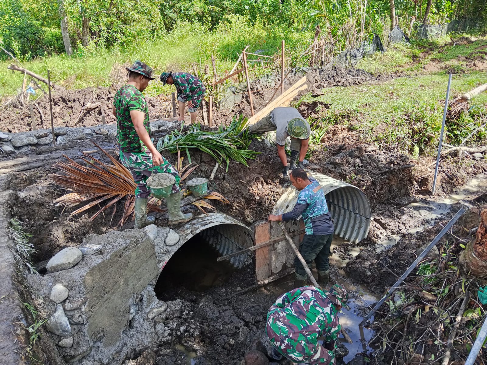 Personel Kodim 0102/Pidie Terus Kebut Pembangunan Jembatan Aramco di Geumpang