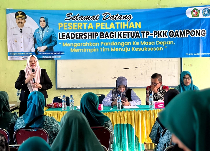 Peukan Baro — TP-PKK Kabupaten Pidie terus memperkuat peran wanita gampong melalui pelatihan Ledership untuk 48 Ketua TP-PKK Gampong se-Kecamatan Peukan Baro, dengan tema pelatihan “ Mengarahkan Pandangan Ke Masa Depan, Memimpin Tim Menuju Kesuksesan” Sabtu (31/1/2026) (Pagi)