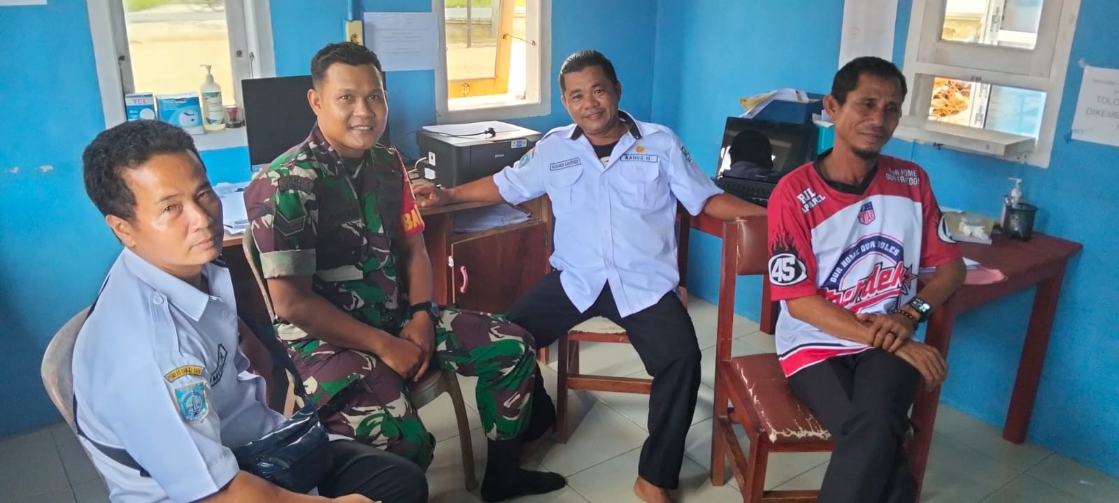 Sertu Agus Prianto, Babinsa Koramil 431- 02/Mentok melaksanakan komsos dengan bapak Panji selaku Kepala Desa Rambat beserta Perangkat Desa, bertempat di Kantor Desa Rambat, Kecamatan Simpang Teritip, ...