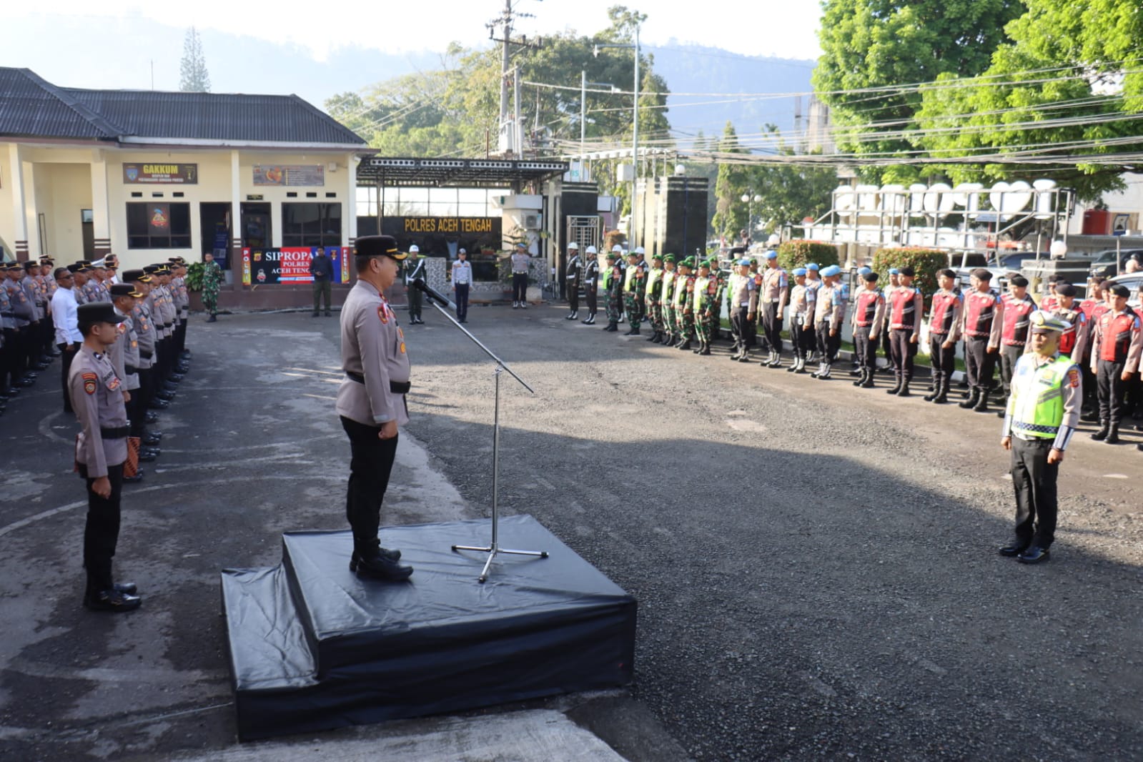 Apel yang dimulai pukul 08.00 WIB tersebut dipimpin oleh Kapolres Aceh Tengah AKBP Muhamad Taufiq, S.I.K., M.H., yang diwakili Wakapolres Aceh Tengah Kompol Samsir, S.H., serta diikuti oleh unsur TNI, Polri, dan instansi terkait.