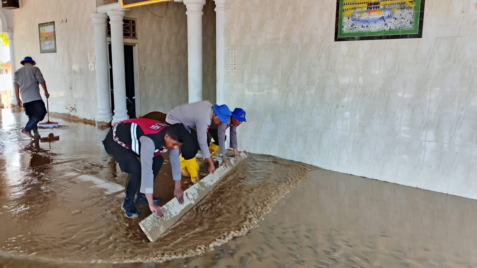 Personel Polres Pidie melakukan pembersihan area dalam dan luar mushala, mengangkat lumpur, mencuci perlengkapan ibadah, serta menata kembali ruangan yang terdampak banjir. Kegiatan ini merupakan bentuk kehadiran Polri dalam membantu mempercepat pemulihan aktivitas masyarakat.